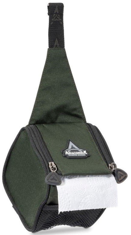 Tento doplněk je určen pro rybáře, kteří si i u vody chtějí dopřát naprostého luxusu.Jedná se o přenosnou toaletní tašku chránící toaletní papír a další hygienické předměty používané na WC. Na zadní straně má speciální popruh s hákem, který se dá pověsit třeba na větev. Víko je zajištěno masivním železným zipem. Materiál použitý při výrobě je voděodolný polyester 600D. Rozměry jsou 13 x13 x 13 cm.