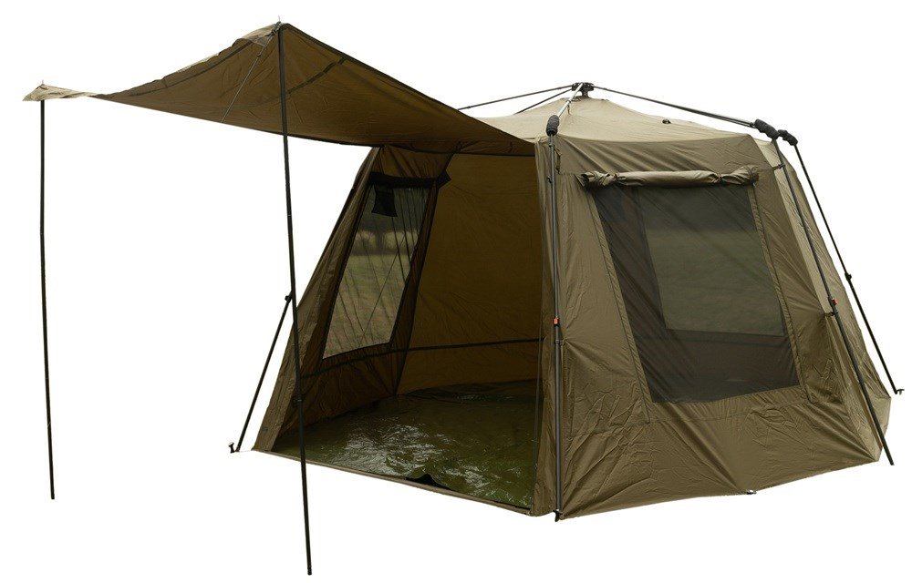 Unikátní sklopný rám a délkově nastavitelné tyče dělají ze sestavení přístřešku snadný úkol pro jednu osobu.