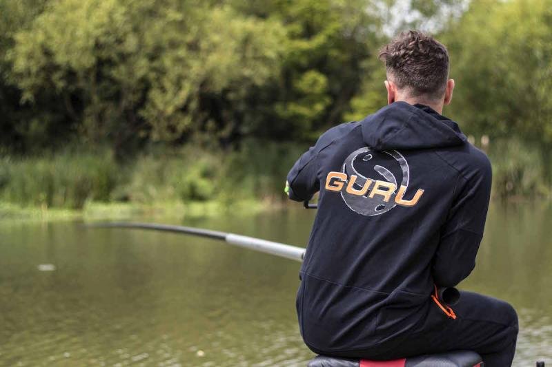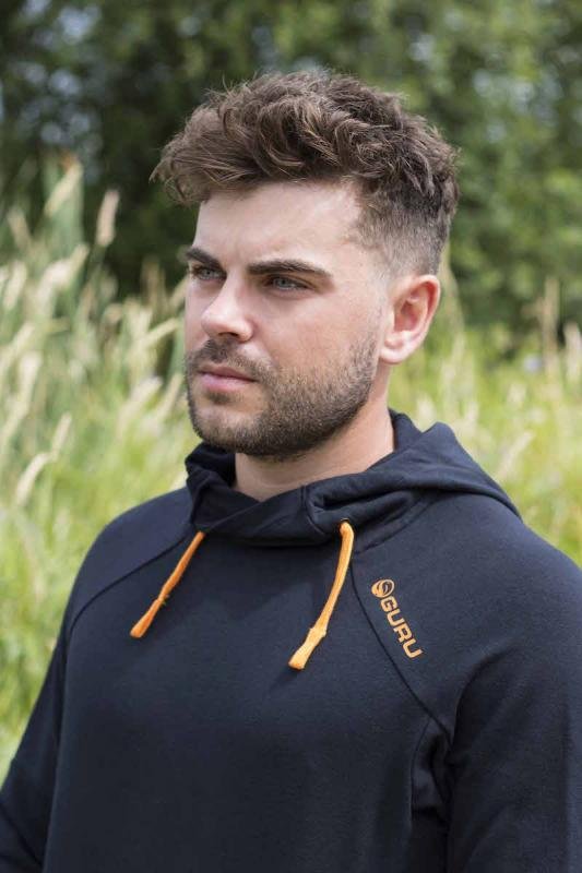 Mikina v černé provedení ve stylu Guru. Ideální volba rybářů z hlediska funkčnosti, protože jejich širší střih ramen neomezují pohyb při nahazování nebo zdolávání.