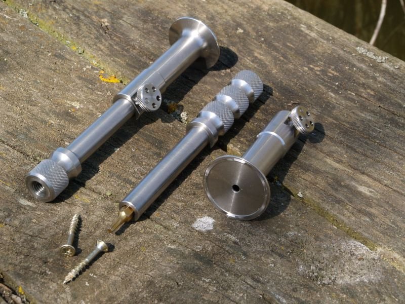 Robustní stavěcí šroub pro zajištění vidličky pevně na svém místě. Středovým otvorem se přišroubuje k podkladu (molo) a vsunese do něj vidlička. Funguje ve spojení s vidličkou JAG. JAG Stage Bite…