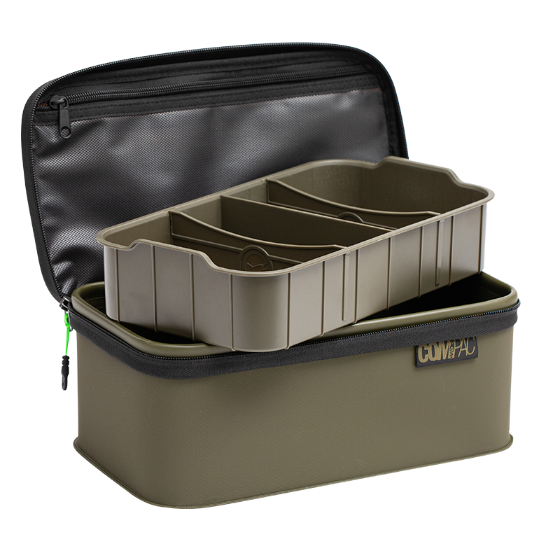 Brašna Korda Compac představuje úhledné, nepromokavé řešení na organizované uskladnění koncových dílů montáží a jiných rybářských nezbytností.
