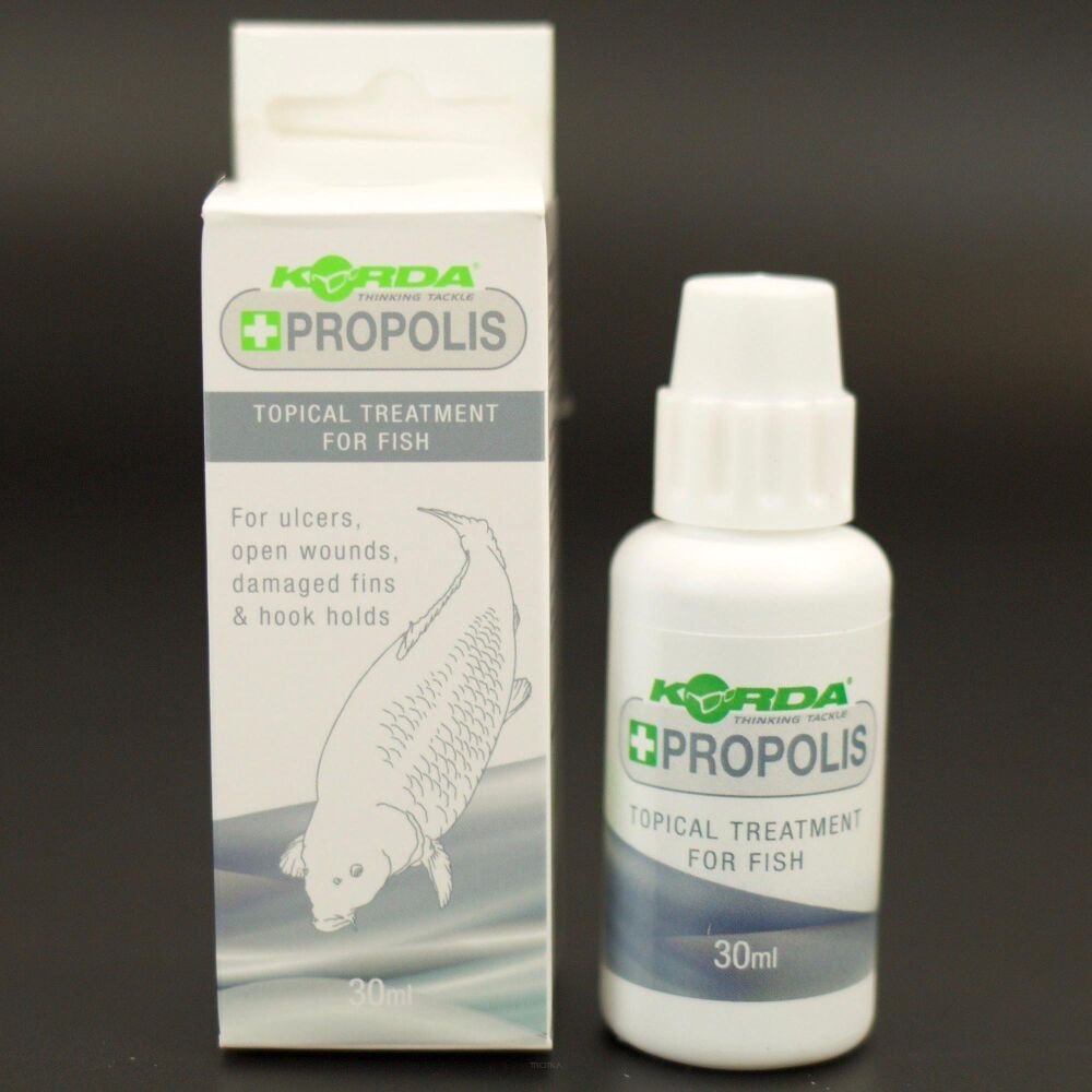 Propolis je přírodní látka s antibiotickými vlastnostmi, kterou lze používat k ošetřování otevřených ran a vředů i zaseknutých háčků, nadzvednutých šupin a poškozených ploutví.