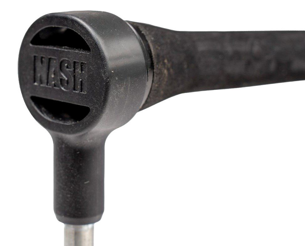 Elegantní karbonová sedla navijáku s gravírovaným logem Nash a plochým úchopem pro palec