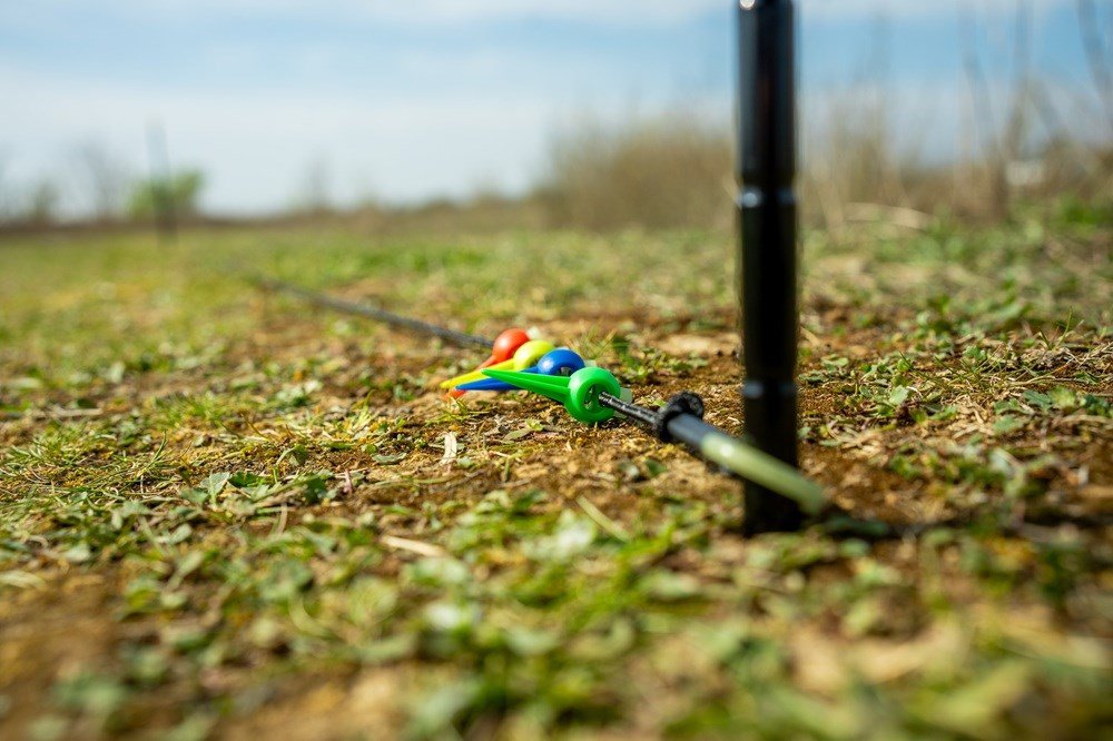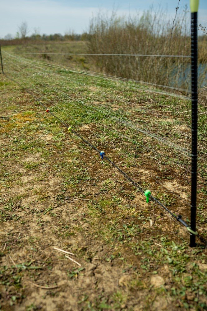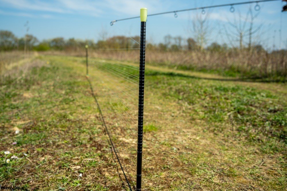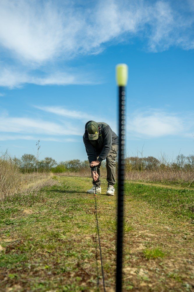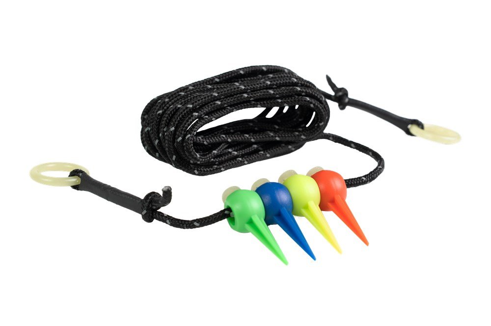 Měřicí šňůra umožňuje nastavit tyče pokaždé v konzistentní vzdálenosti 3,6 m od sebe. Je vybavena nastavitelnými, unikátně zbarvenými značkami Nite Glo s hroty na konci, které se jednoduše posouvají po šňůře do požadované vzdálenosti pro každou vidličku a poté se bezpečně zapíchnou do země.
