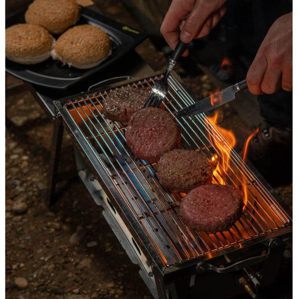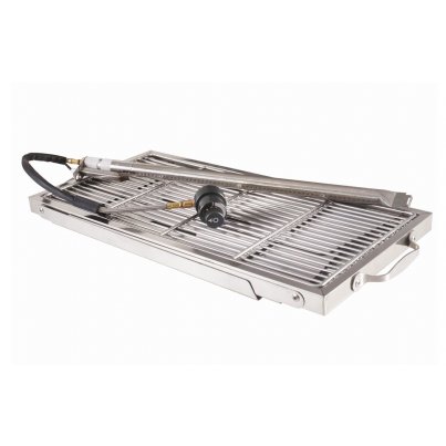 Nerezový RidgeMonkey Grilla BBQ je nekompromisní přenosný gril perfektní pro rybaření, kempování, výlety a mnoho dalších použití. Sbalený gril je velmi kompaktní, ale zároveň velmi robustní, když ho rozbalíte a používáte. Tato jeho plynová verze obsahuje plynový hořák, který se táhne po celé délce grilu. Intenzita hoření je plně nastavitelná, má snadné piezo zapalování a dva odstranitelné postranní nerezzové stolky na odkládání potřebných ingrediencí a grilovacího nářadí. Designován je tak, aby se velice snadno postavil a používal. Dodáván je s přepravním pouzdrem. S tímto prostorově úsporným a přitom výkonným grilem skvěle nakrmíte sebe i své kamarády a budete se hned těšit na další nášup! Gril má plochu 40 cm x 20 cm, což je dostatek prostoru pro burgry, klobásky, steaky, kuřata, mořské plody, zeleninu a mnoho dalšího. Ke grilu si můžete dokoupit i grilovací tác Grilla BBQ Hotplate, který z grilu vytvoří rovnoměrně zahřívanou plotnu a vy se můžete pustit do dalších kulinářských akcí. Specifikace: • Rychlé a snadné použití • Celé tělo z nerezové oceli • Hořák, který se táhne po celé délce grilu s regulovatelnou intenzitou a piezo zapalováním • Dva odnímatelné nerezové odkládací stolky • Kompatibilní se všemi EN417 šroubovacími plynovými kartušemi • Unikátní skládací mechanismus • Dodáváno v přepravním obale • Možnost dokoupení grilovacího tácu Grilla BBQ Hotplate • Registrovaný design • Rozměry: 47 cm (š) x 22 cm (d) x 30 cm (h) • Půdorys: 65 x 22 cm • Přepravní rozměry: 47 x 22 x 3 cm • Hmotnost: 4,5kg Obsahuje: • Rychle rozkládací tělo s integrovanou deskou na dřevěné uhlí a odnímatelnou mřížkou grilu • Šroubovací přívod plynu kompatibilní s EN417 kartušemi • Dva odnímatelné odkládací stolky • Přepravní obal