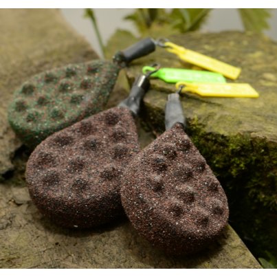 Olova se speciální povrchovou pískovou úpravou. V nabídce jsou dvě provedení - zelené a hnědé. Barevný plastový štítek slouží k označení hmotnosti olova a lze ho jednoduše odlomit.
