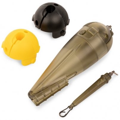 Obsah balení: 1× plovák, 1× dřík pro upevnění olova s ložiskovým obratlíkem, 1× zátka s ložiskovým obratlíkem, 3× uzavírací čepička (zelená – průsvitná, černá a svítivě žlutá) a 1× rychlovýměnná karabinka.
